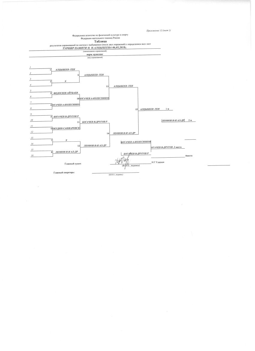Турнир памяти Н.Н.Алцыбеева пары