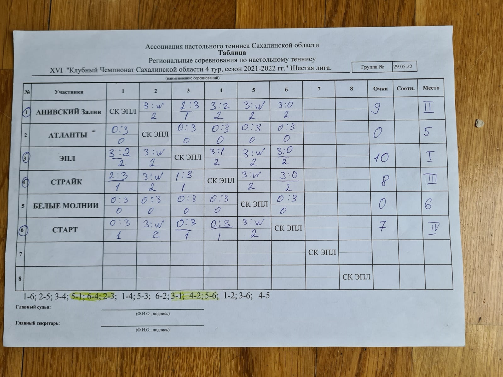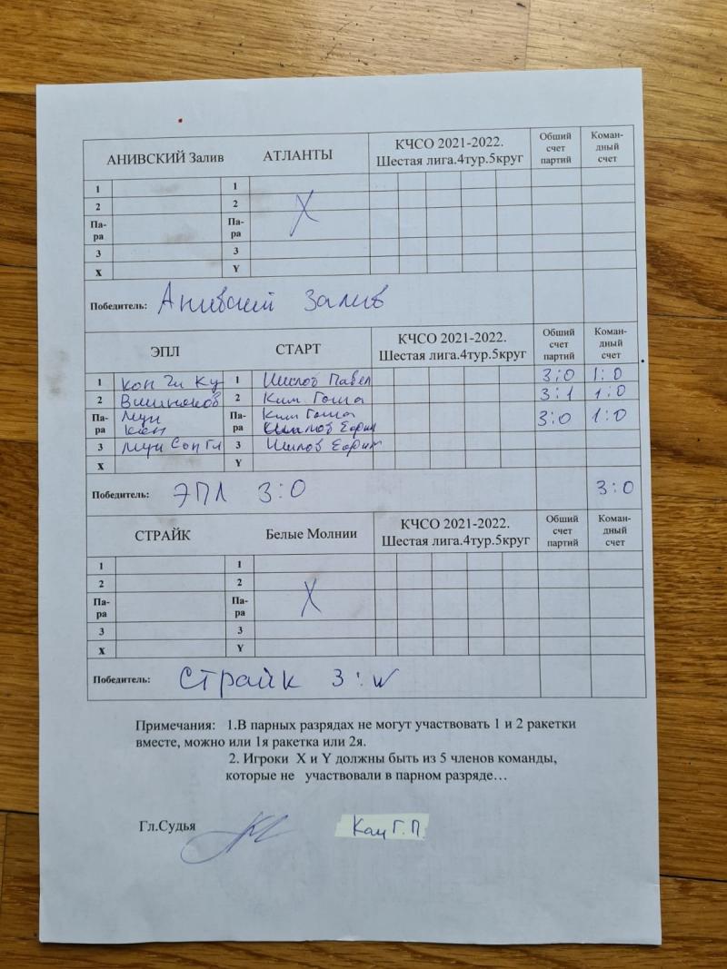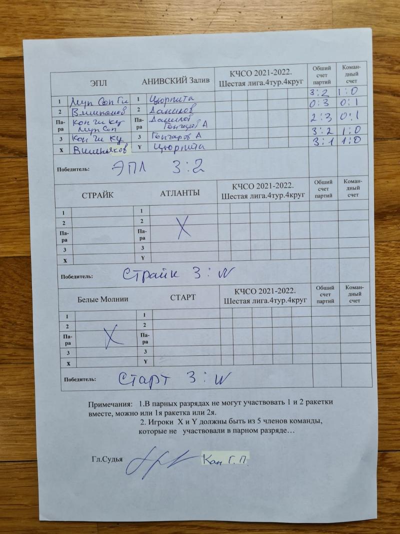 4 тур клубных 6 лига